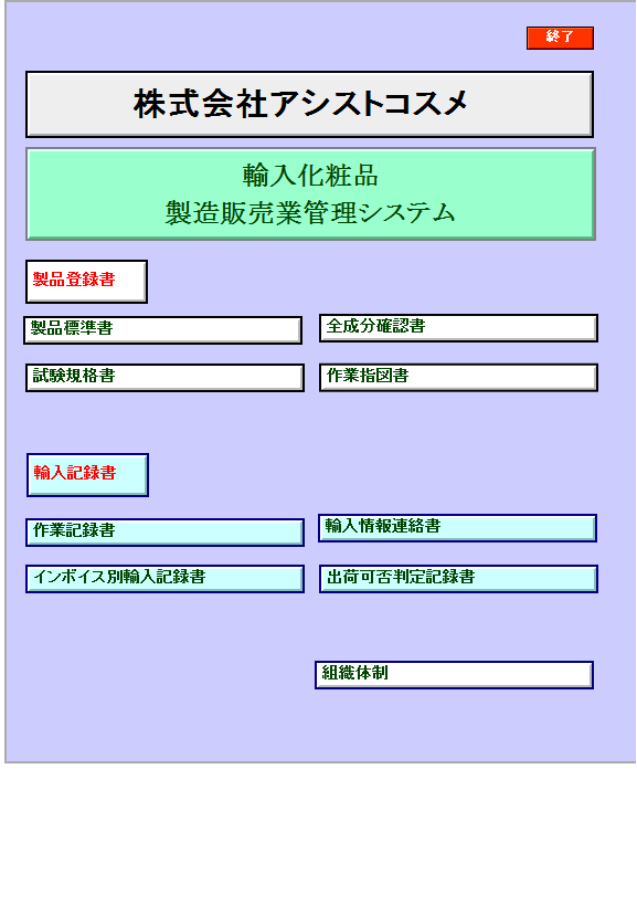 - 化粧品製造販売業の許可及び化粧品製造業(包装、表示、保管)の許可申請書および更新申請書作成
